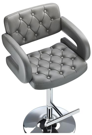 This Balmoral Bar Stool features a classic design updated with a retro twist. The cool retro button back design upholstered in faux leather is combined with sweeping curved arms and a highly polished chrome finish for both comfort and style. The bar stool also features an elegant and minimalist T-bar footrest and a protective, non-slip rubber base for stability.