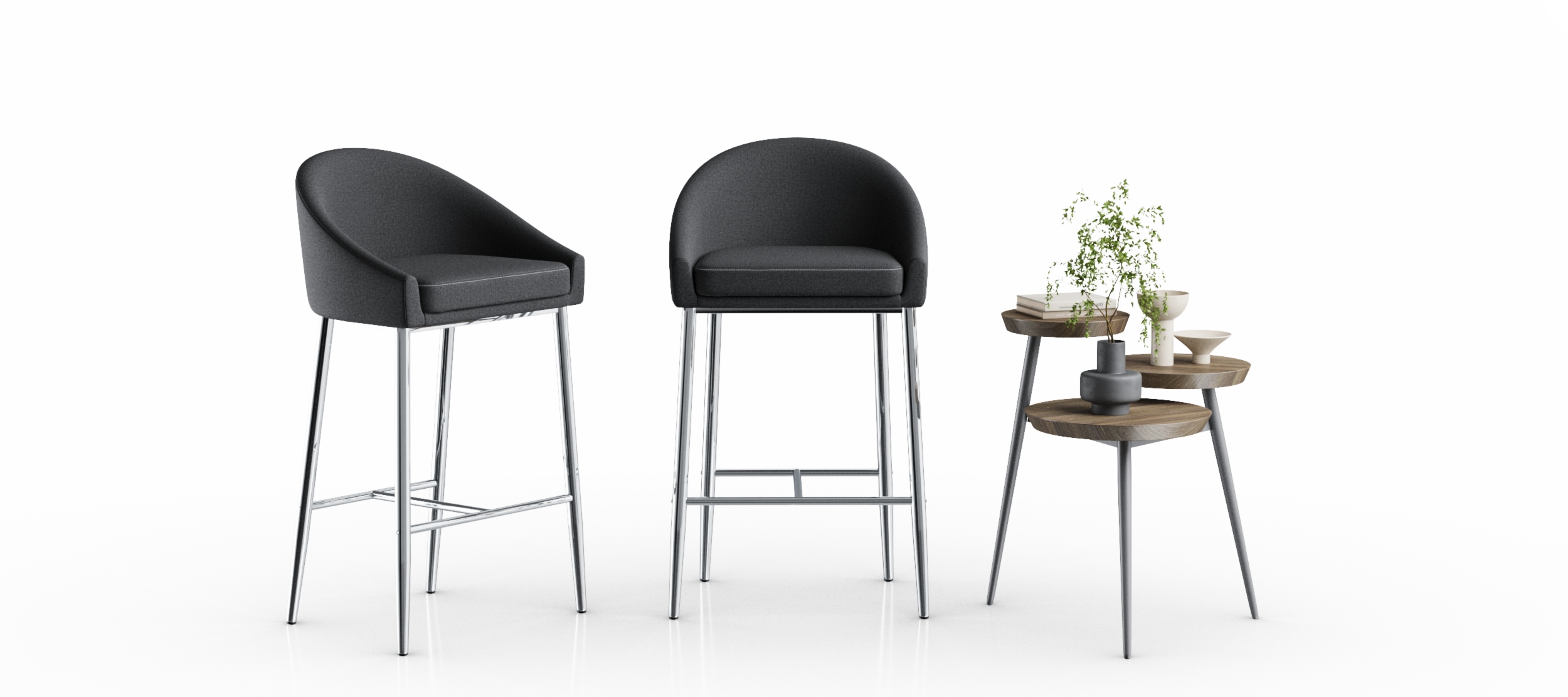 Add a contemporary touch to your kitchen or dining area with this stylish Café Italia bar stool. With its timeless soft black fabric upholstery, it’ll blend effortlessly into your existing room décor. The sturdy polished chrome frame complements the design perfectly, offering both chic looks and reliable durability, thanks to the re-enforcing crossbars, one of which doubles as a convenient footrest.