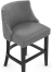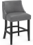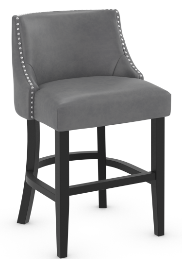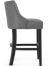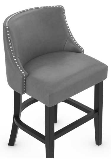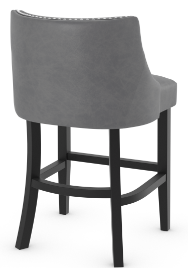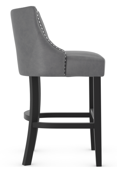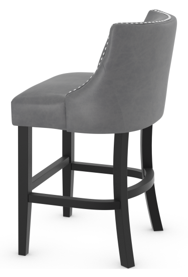 The base of the chair features a set of solid wooden legs in a matte black finish. This dark tone complements the black seat, creating a sleek and unified aesthetic. The legs are slightly tapered and connected by a set of curved stretchers, offering both structural integrity and a graceful touch to the overall form. This chair would make a strong statement in a modern kitchen, upscale bar area, or any interior that appreciates a blend of sophistication and comfort.