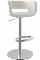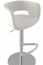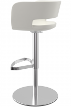 The base of the Claudio Bar Stool is equally eye-catching, finished in a sleek brushed metal that exudes contemporary elegance. The minimalist frame includes a sturdy round pedestal base for optimal stability and a streamlined, integrated footrest crafted in a modern geometric design, adding both comfort and visual intrigue. The stool is equipped with a discreet brushed metal lever beneath the seat, allowing for height adjustment and a smooth 360° swivel, offering both style and everyday practicality.