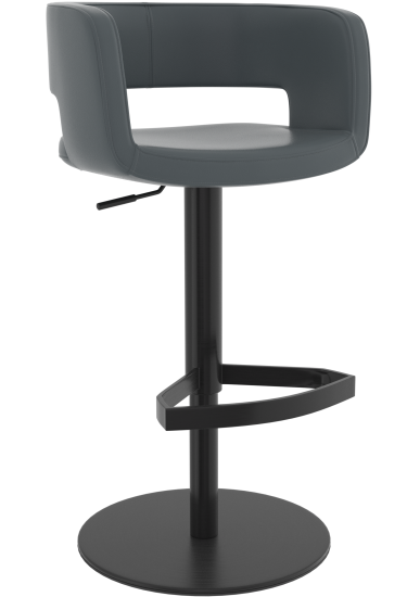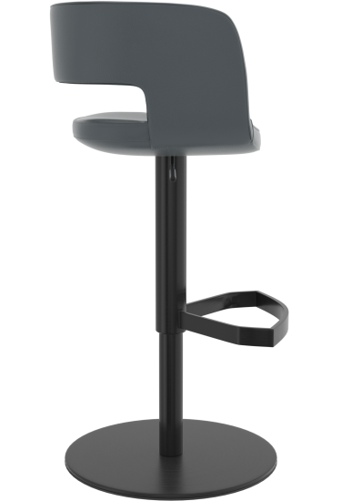 The base of the Claudio Bar Stool is equally eye-catching, finished in a sleek matte black metal that exudes contemporary elegance. The minimalist frame includes a sturdy round pedestal base for optimal stability and a streamlined, integrated footrest crafted in a modern geometric design, adding both comfort and visual intrigue. The stool is equipped with a discreet black lever beneath the seat, allowing for height adjustment and a smooth 360° swivel, offering both style and everyday practicality.
