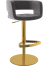 The base of the Claudio Bar Stool is equally eye-catching, finished in a radiant gold-tone metal that exudes glamour. The gleaming frame includes a round pedestal base for superior stability and a sleek, integrated footrest shaped in a contemporary geometric form, adding both comfort and visual interest. The stool also features a discreet gold lever beneath the seat, allowing for height adjustment and full 360° swivel, combining aesthetics with everyday functionality.