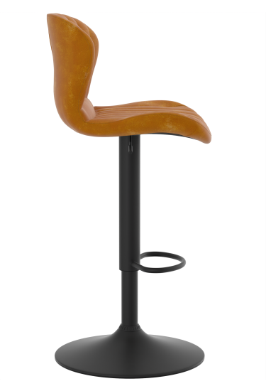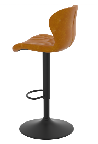 Whether used at a kitchen island, home bar, or in a stylish commercial setting, the Dante Bar Stool delivers comfort, durability, and eye-catching design. Its combination of warm faux leather and bold black metal makes it a versatile choice for interiors that value both retro flair and modern convenience.