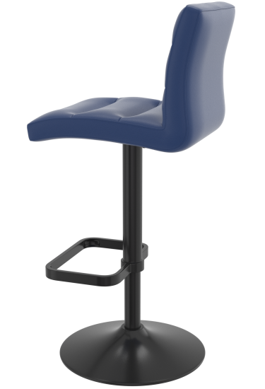 The Deluxe bar stool presents a refined and contemporary design that effortlessly blends style with functionality. Upholstered in sleek dark blue faux leather, this stool exudes modern sophistication. The seat and backrest feature horizontal channel tufting, providing both visual interest and added comfort through padded support. The cushioning appears plush, inviting long periods of seated comfort whether in a home bar, kitchen island, or upscale commercial setting.