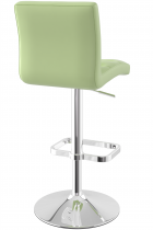 The Deluxe bar stool in its chrome-polished version presents a bold, contemporary aesthetic that exudes upscale refinement. Designed to make an impression, it features a richly padded seat and backrest wrapped in smooth green faux leather. The horizontal channel tufting on the backrest offers a subtle touch of texture while enhancing lumbar support, ensuring the stool is as comfortable as it is stylish.