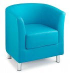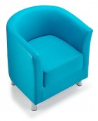 Beneath its sculpted body, polished chrome legs lift the piece off the ground, lending it a light and contemporary feel. Their cylindrical shape adds a subtle contrast to the chair’s rounded contours, creating a balanced aesthetic that works beautifully in modern lounges, reception areas, or home living spaces. The Designer Tub Chair embodies timeless minimalism with an inviting softness — a piece that elevates any setting with its refined comfort and effortless elegance.