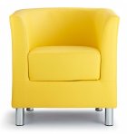 Beneath its sculpted body, polished chrome legs lift the piece off the ground, lending it a light and contemporary feel. Their cylindrical shape adds a subtle contrast to the chair’s rounded contours, creating a balanced aesthetic that works beautifully in modern lounges, reception areas, or home living spaces. The Designer Tub Chair embodies timeless minimalism with an inviting softness — a piece that elevates any setting with its refined comfort and effortless elegance.