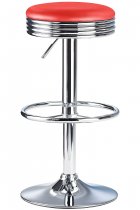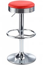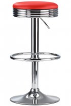 Treat yourself to a Detroit bar stool in vibrant red for a piece of furniture that will set your room ablaze with colour. This traditional diner-style design is brought spectacularly up-to-date by the use of high quality, scarlet faux leather and stylish, shiny chrome. It is a striking piece that gives that fantastic retro feel to any bar area, kitchen or trendy living space. Practical, with its height-adjustable seat that can swivel around full circle, circular foot rest for comfort and steady base it is designed to withstand regular or heavy use. It is easy to assemble the Detroit in red, simply follow the straightforward instructions.