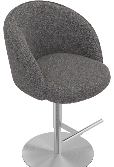 The plush, generously padded seat ensures exceptional comfort, making the Divani perfect for leisurely dining or social gatherings. Its compact, curved silhouette brings a sense of intimacy and style, while maintaining a sleek, contemporary profile. The stunning brushed metal base adds a touch of understated glamour, complementing the organic texture of the teddy textured fabric with a modern brushed steel finish.