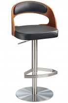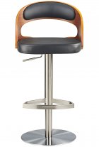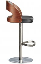 Combining both modern and industrial features, the Marco Bar Stool perfects the fusion of a brushed metal frame and a walnut wood veneer. Sleek lines and contemporary stylising creates an eye-catching discovery of high-quality seating to meet your needs. Combined with faux leather upholstery in classic black, this bar stool will fit in any kitchen or dining area to deliver an up-to-date edge.