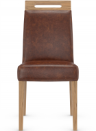 Visually striking in both simplicity and style is the Modena dining chair in brown aniline leather. This timeless piece of unique furniture is alluringly upholstered in aged brown coloured leather that lends a timeless and endearing appeal to it. A decorative open back rest positioned at the top, serves to immediately draw your attention to this attractive chair, even as it highlights its elegant appeal, while the straight cut lines define its straightforward design.