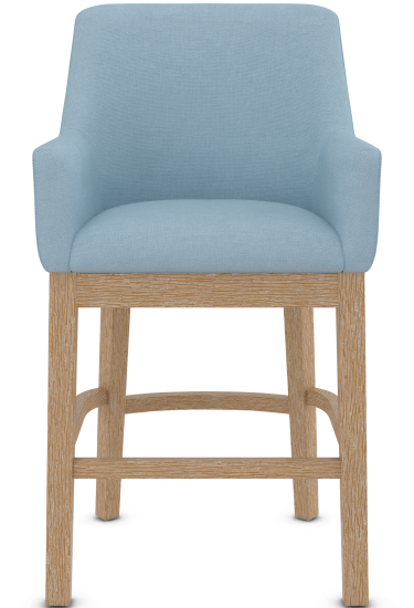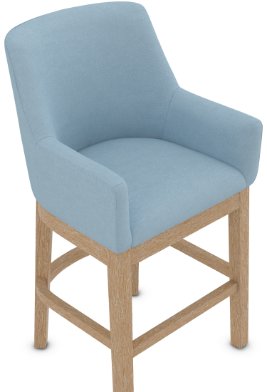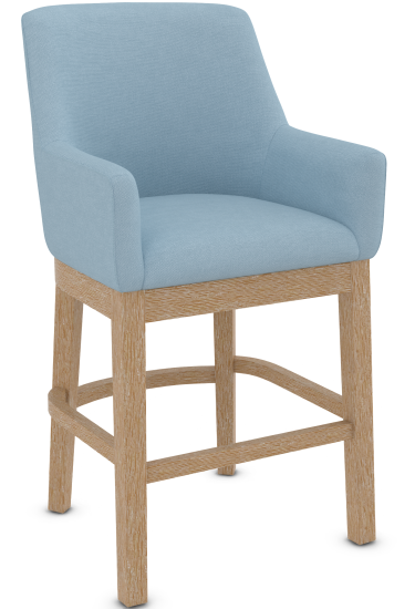 The Montague Bar Stool showcases an inviting blend of classic charm and contemporary elegance. Upholstered in a soft blue-coloured fabric, its warm neutral tone effortlessly complements a wide range of interior styles, from modern minimalist to cozy farmhouse. The generously padded seat is framed by distinctive winged arms that gracefully curve outward, offering both refined style and comfortable arm support for relaxed seating.