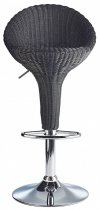 For all of your seating solution needs, the Rattan Bar Stool in a delicate and welcoming shade of black is the ideal answer to your problems. Avoid any clashing of colours or mismatched shades with this deep black rattan scoop seat, which offers both comfort and high-end design. The stark contrast of the circle polished chrome base with its ergonomic footrest against the organic forms of the seat creates a modernistic feel for the contemporary home.