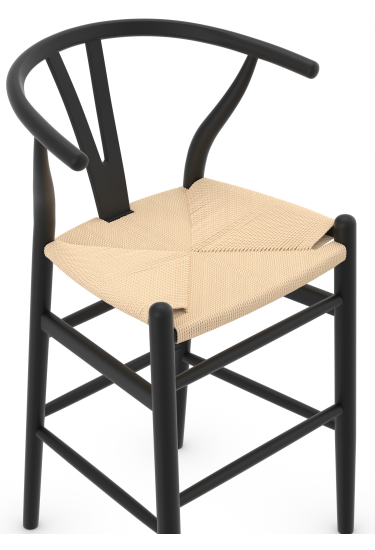 The distinctive Y-shaped back offers both aesthetic appeal and ergonomic support, cradling the body in a comfortable yet upright posture. The hand-woven seat, provides a tactile and durable surface that complements the wooden structure beautifully. The texture of the seat adds visual depth, while the natural weave ensures resilience and long-lasting comfort.