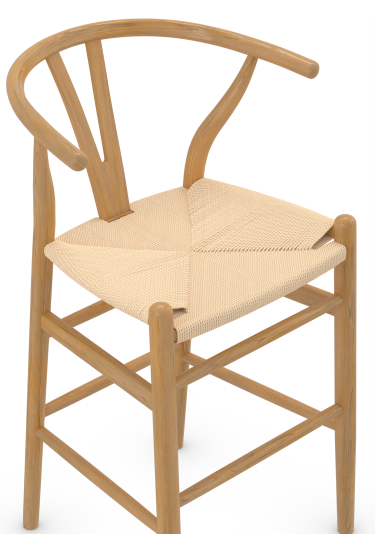 The distinctive Y-shaped back offers both aesthetic appeal and ergonomic support, cradling the body in a comfortable yet upright posture. The hand-woven seat, provides a tactile and durable surface that complements the wooden structure beautifully. The texture of the seat adds visual depth, while the natural weave ensures resilience and long-lasting comfort.