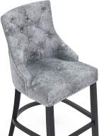 This elegant seat is the Windsor Bar Stool in Grey Velvet. The chair is covered in a beautiful crushed commercial grade velvet and is padded with buttons pressed into the back, arranged in a diamond pattern. There are also silver-toned studs along the bottom cushion to match the decorative chrome ring at the rear. The bottom of the seat itself is rounded with padding for added comfort.