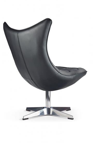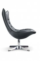 Anchoring the piece is a sturdy polished chrome swivel base with four broad legs, enhancing stability while allowing for smooth rotation. The Wing Lounge Chair is perfect for modern living rooms, creative offices, or upscale lobbies, offering a compelling blend of futuristic form and timeless sophistication. It’s not just a place to sit—it’s a conversation starter.